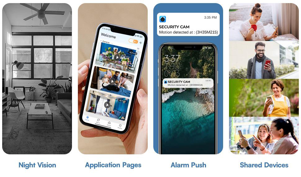 SafeCam 360 security camera allows remote control via your smartphone anywhere, anytime! It would record videos automatically when detecting motion. Alert notifications will be quickly pushed to your mobile phone, helping you keep your home safe in time.
